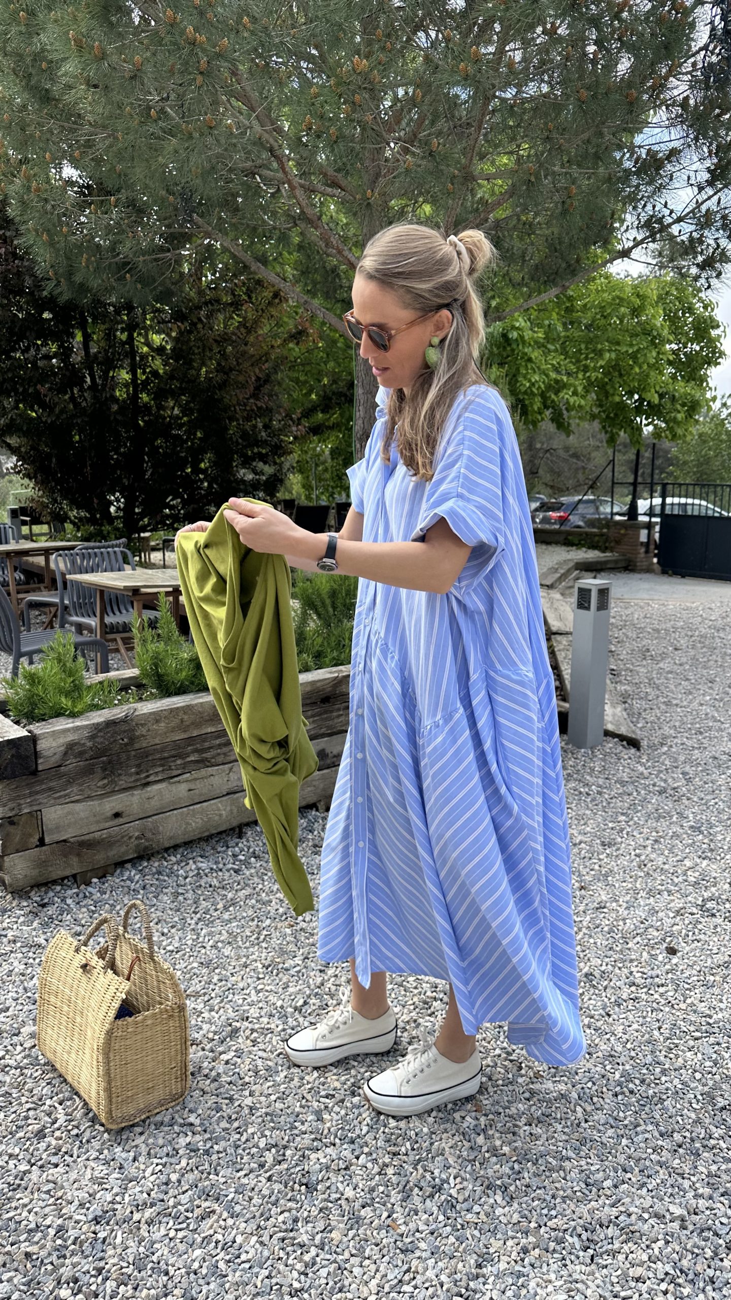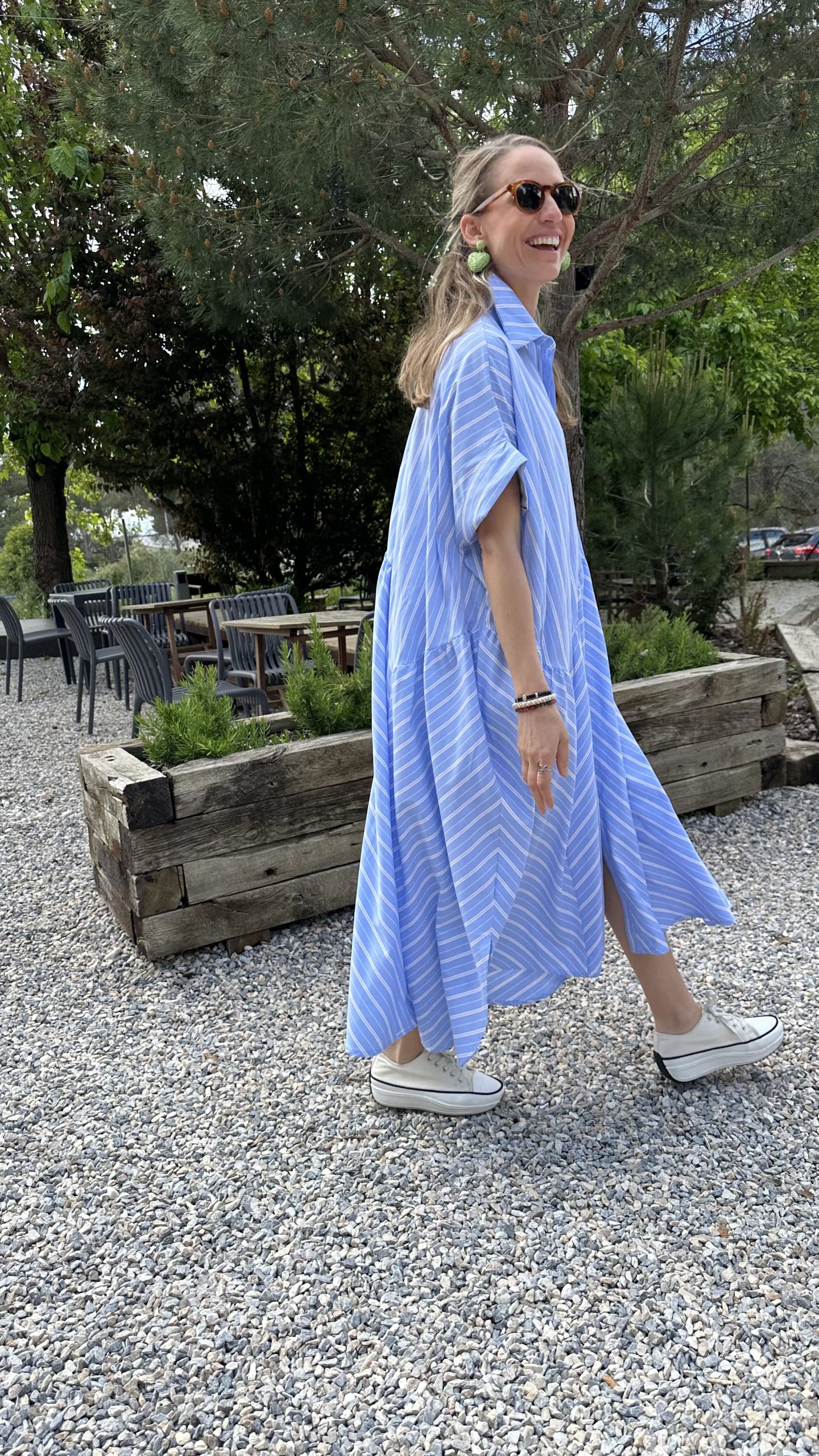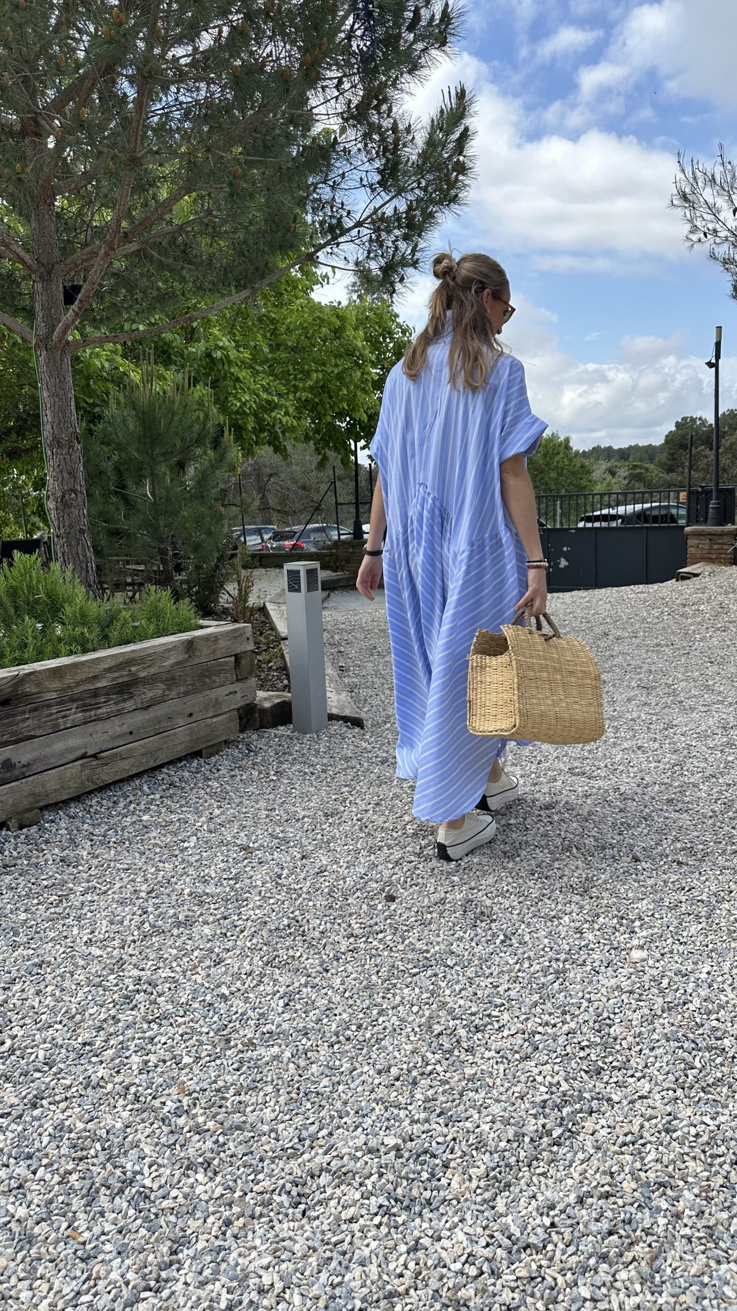 - Estampado de rayas en tonos azules.
